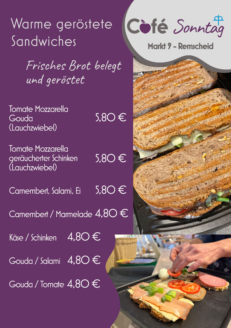 Reserve onlineGenießen Sie bei mir leckeres Frühstück, selbst gemachte Kuchen, Torten, frische Waffeln und hausgemachten Mittagstisch in geselliger Atmosphäre! Alles auch zum mitnehmen ! Sonntags gibt es eine ausgesuchte Auswahl von Kuchen und Torten sowie Broten der Bäckerei Beckmann, wochentags gibt es zusätzlich köstliche Brote der Bäckerei Kurth aus Remscheid.